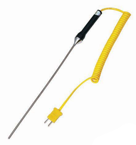 手柄式热电偶又称手持式热电偶专供测量各种形状的固体介质的表面温度以及测量液体、气体的温度。手柄式热电偶使用范围很广,不受物体表面的形状限制,外形轻巧,携带方便,由于手柄式热电偶具有直径小、可弯曲、抗震动、热响应时间快和紧固耐用、可靠性高等优点,该产品与数字显示仪配合使用可直接测量并显示不同生产过程中0~1200℃范围内的各种介质的温度,被广泛用于冶金、化工、纺织、印染、造纸、橡胶、塑料、陶瓷、粮仓等工业部门、企业。